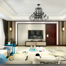 在設(shè)計上提煉了中式經(jīng)典元素并加以簡化和豐富,在家具形態(tài)上更加簡潔清秀,同時又打破了傳統(tǒng)中式空間布局中等級、尊卑等文化思想,空間配色上也更為輕松自然。
