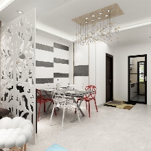 整體色調(diào)以黑白灰為主,偏后現(xiàn)代風(fēng)格,家具多為白色,時尚簡潔。
