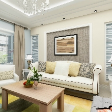 現代簡約風格,本案例才色彩上的選用以淺色系為主,藍色為主色調,黃色,綠色,打造一個生機盎然的空間,線條上的設計偏于簡約,有效的節約空間,同時增加收納功能