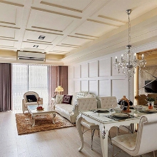 紫羅蘭色與白色搭配出清新浪漫氛圍。同時又不失高雅。家裝家具一體價:14萬。