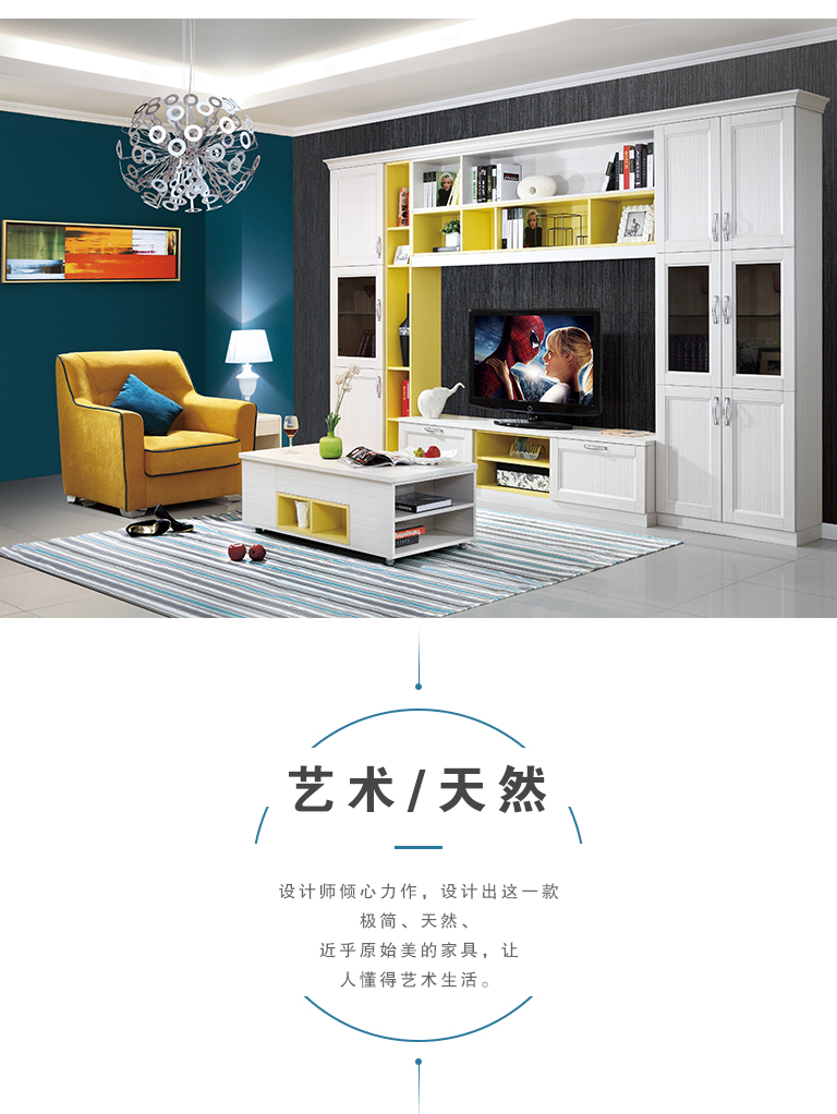 | 細(xì)節(jié)描述 | 此空間為蘇香桐套檸檬黃的定制電視柜,茶幾 |