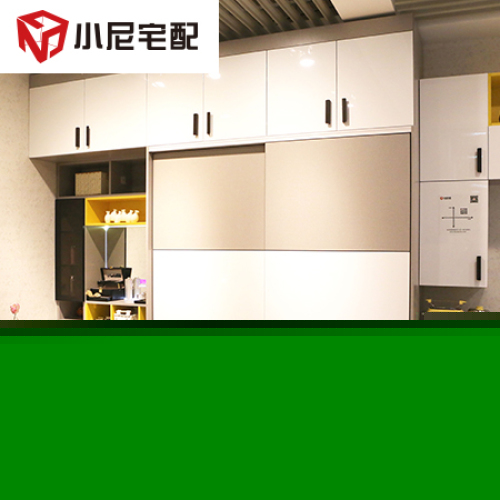 | 細節描述 | 定制到頂推拉門衣柜,亮白吸塑和灰布紋的搭配,較之純木色家具更為年輕,都市感更強。床頭柜妝臺L型拼搭,更顯整體。梳妝臺化妝品可以分區放置,生活更精細化。多工能魔鏡,顯示溫度濕度,方便出門的時候搭配適當的衣物,藍牙播放器功能,讓生活更有品味和樂趣。 |