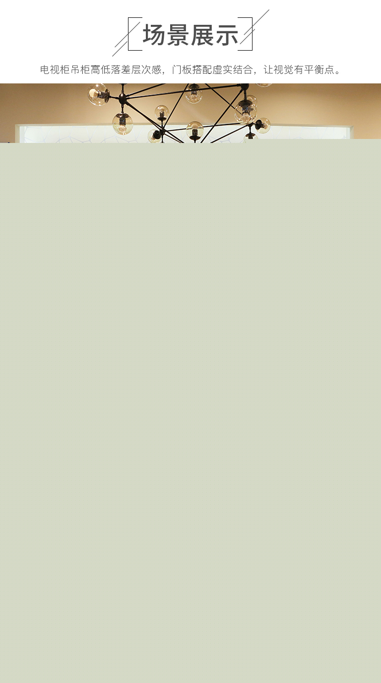 | 細節描述 | 布局小而精致,整體節奏強,立體感豐富,可以折射出主人時尚干練的風格,吊柜高低落差具有層次感,門板搭配虛實結合,讓視覺有平衡點,使整體空間看著不單調。 |
