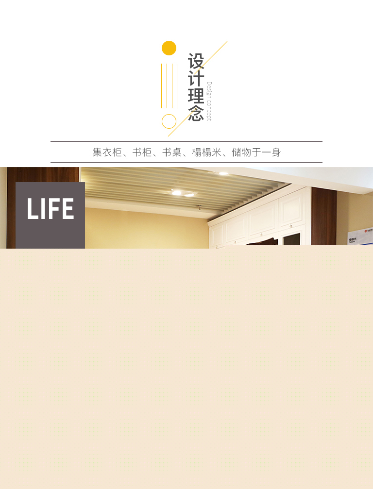 | 細(xì)節(jié)描述 | 這個(gè)房間功能十分強(qiáng)大,利用榻榻米做到了臥室兼書(shū)房的妙用,一室多用。柜體到頂不但美觀而且實(shí)用,兩側(cè)的書(shū)柜完美的區(qū)分休閑區(qū)和學(xué)習(xí)區(qū),書(shū)桌和榻榻米連為一體,小空間大利用。 |