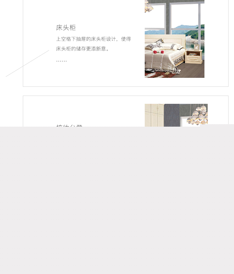 | 規格 | 單人床:1570*2128*927mm 床墊:1500*2000*200mm 床頭柜:558*401*448mm 推拉門衣柜:2316*633*2775mm 梳妝臺:596*400*1430mm 梳妝凳:400*250*470mm |