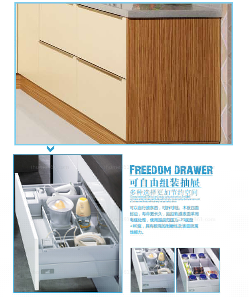 始于內心的情感體驗,如同與大自然接觸,聆聽內心最真實的聲音,在流行 時尚中尋回自己的基調,令生活變得悠閑、優雅、 幽靜、優美.....。門板顏 色采用米黃色與木紋色搭配處理。