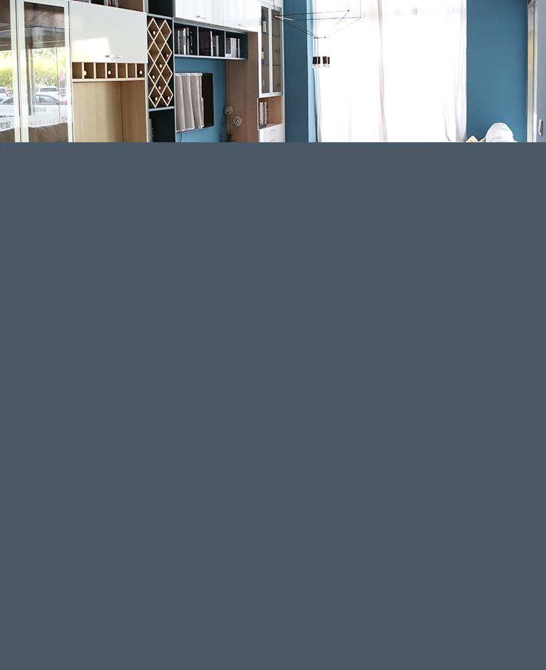 設計師將電視柜、書柜、展示柜、儲物柜等合為一體,再配上模塊化設計手法,大模塊中包含著小模塊,可以不受空間限制,自由組合,隨意中遵循著規律。