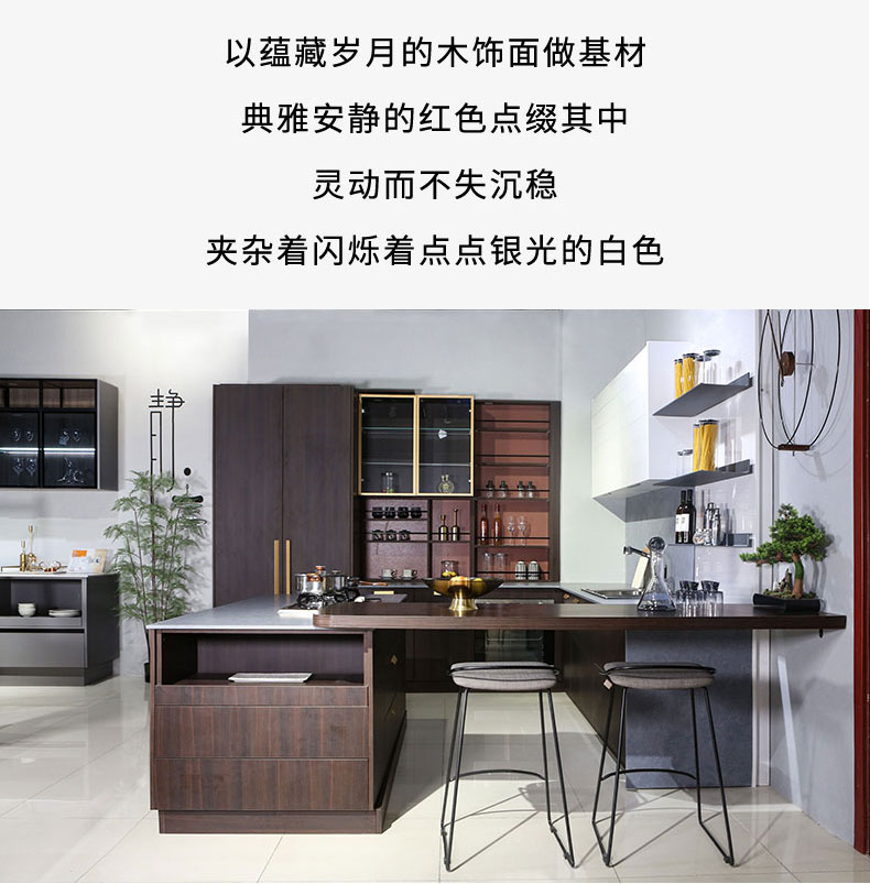 大面積的深色木紋結合閃銀白色設計,使整個空間并不沉悶